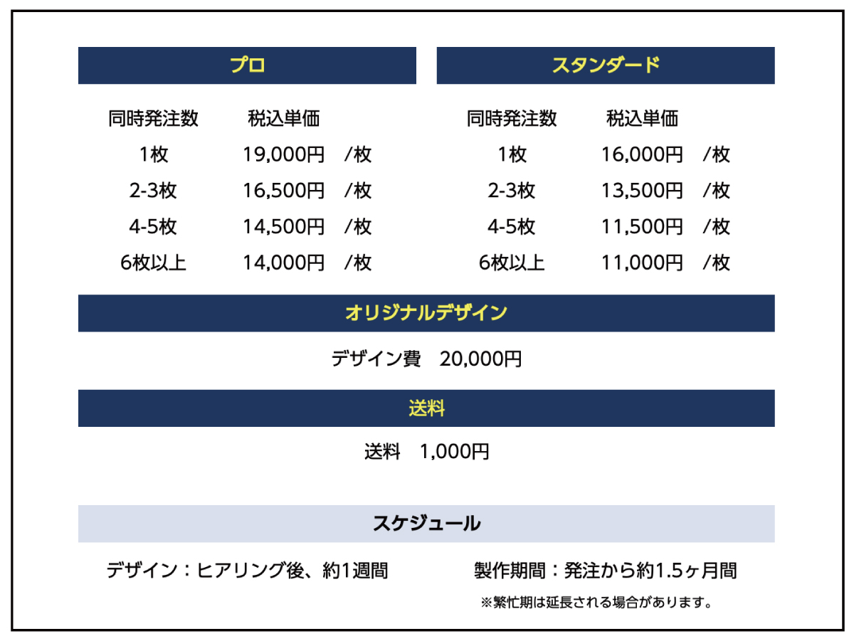 完全オリジナルデザインをご希望の方はこちらをお選びください。まずはイメージをヒアリングさせていただき、そちらをもとにデザインを組み立てていきます。初回デザイン費用は約15,000円になりますが、2回目のご発注からはレオタード代のみになります。特別なチームカラーを出したい場合におすすめです。(プロ / スタンダート 対応)