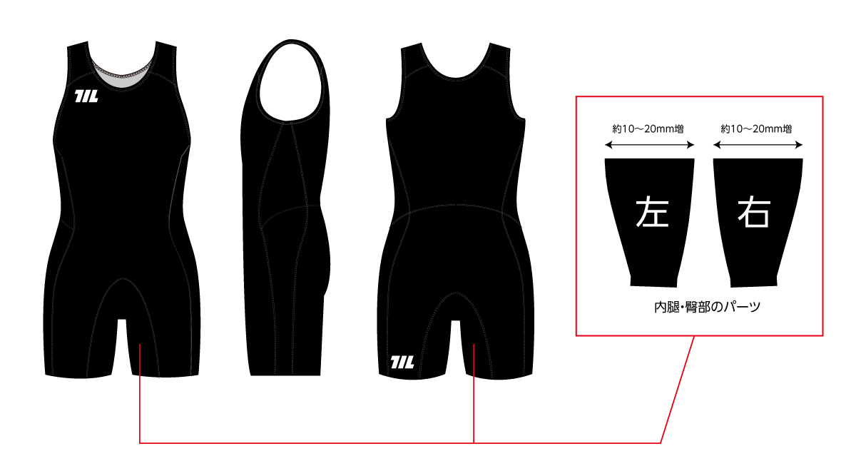 着用した瞬間、最も美しく見えるようMAMOが独自に設計した型紙を採用。腹部から腰部にかけてサイドパーツをぐっと食い込ませる立体縫製を採用しており、アスリート特有のしなやかな曲線を際立たせます。レスリング界では、高校生〜大学生・オリンピック金メダリストに愛されているタイプです。